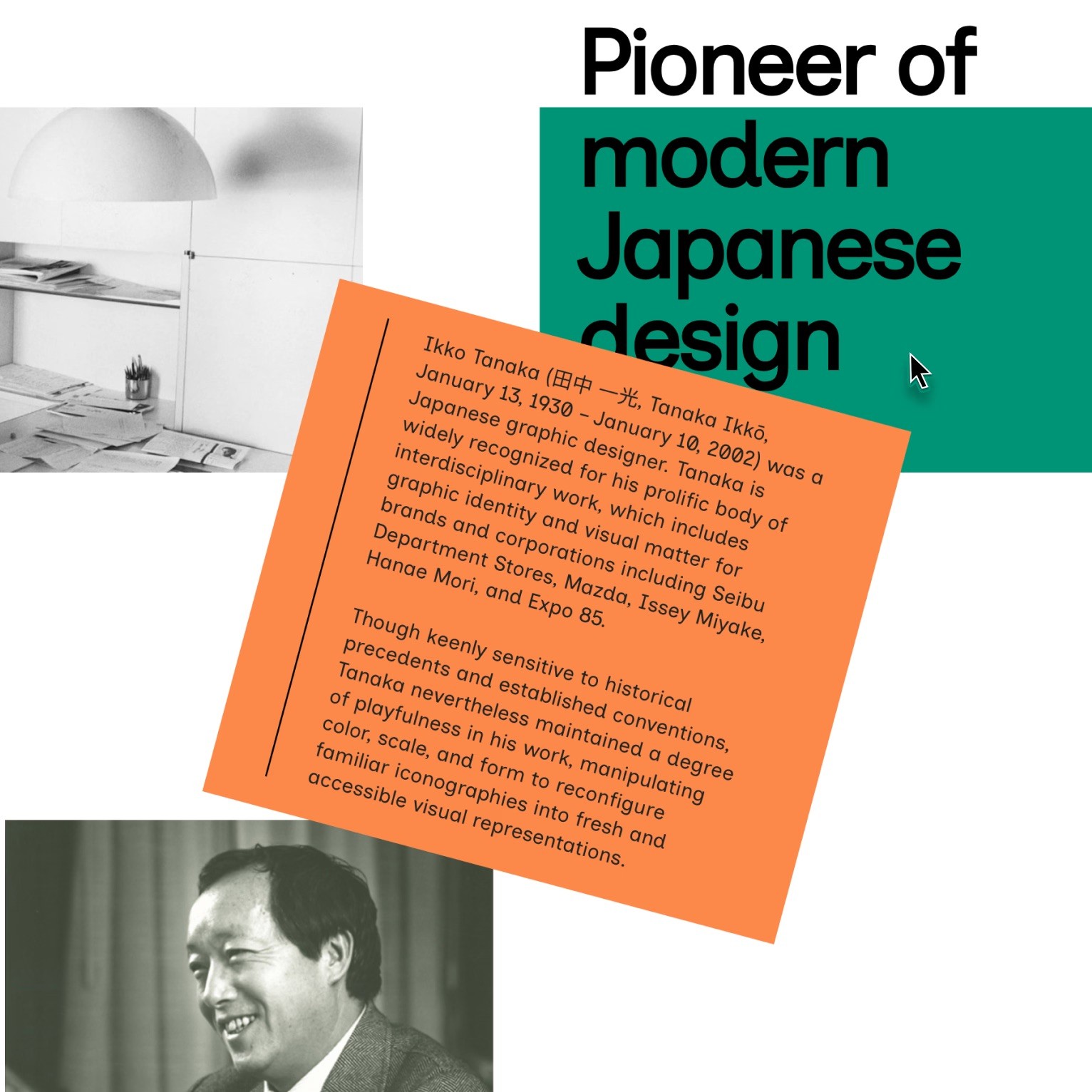 Ikko Tanaka is a Japanese graphic designer who fused modernist principles and aesthetics with Japanese tradition, creating work celebrated for its geometric shapes and vivid colors. I designed an informational website that explores his biography, timeline, and key works, creating a clean and visually engaging layout that reflects his distinctive design style.