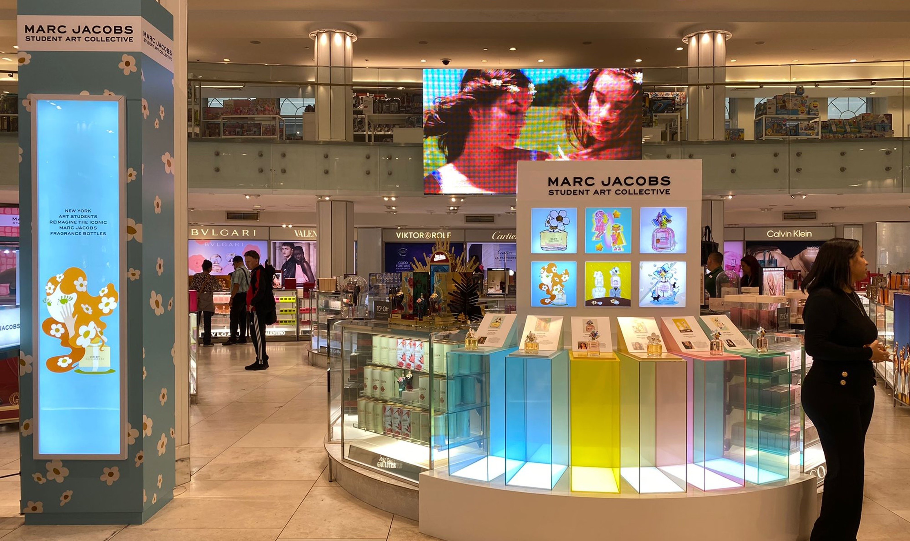 I designed in-store graphics for Marc Jacobs Daisy perfume at Macy's Herald Square. My creative direction was informed by research into the brand's identity, signature scent profile, and target demographic.